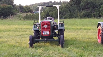 Der Hela D14 erschien 1949 als moderner, gut ausgestatteter Schlepper der unteren Leistungsklasse. In der Ausstattung befanden sich zwei Zapfwellen mit unterschiedlichen Drehzahlen, eine abschaltbare Riemenscheibe, Differenzialsperre, gefederte Vorderachse, Mähwerk und Beleuchtung - in der damaligen Zeit nicht selbstverständlich.